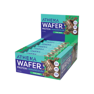 Indulge in the delicious taste of Athena Wafer Protein + Magnesium bars, packed with 31% protein and 25% RDI magnesium.