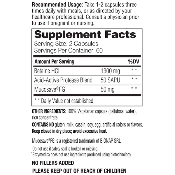 About Supplements.co.nz Enzymedica Betaine HCl