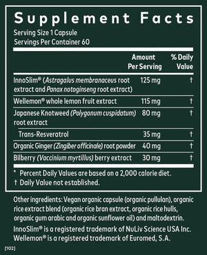 The formula comes in 60 capsules, designed as a 30-day supply when taken as directed. Capsules are light and easy to swallow, slipping neatly into a busy pocket or routine. InnoSlim® helps with glucose processing while Wellemon™ supports key metabolic signalling for balanced energy. Because it’s caffeine-free there’s no jittery lift—just calm, steady support for daily activity.