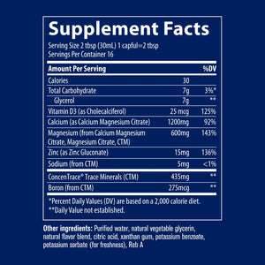 Boost your daily wellness routine with our Cal/Mag/Zinc liquid supplement, carefully crafted by Trace Minerals. This powerhouse blend combines calcium, magnesium, and zinc, along with vitamin D and ionic trace minerals, to support your overall health and active lifestyle. Supports bone and muscle function, making it perfect for those who lead an active lifestyle. Conveniently formulated to help maintain your daily mineral and vitamin levels, ensuring you're always at your best.