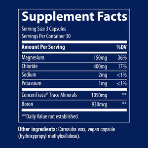 Boost your overall health with ConcenTrace Trace Mineral Capsules, a premium dietary supplement packed with a full spectrum of ionic trace minerals.