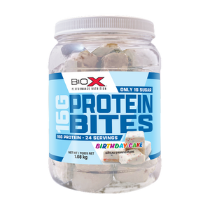 Choose from a range of mouth-watering flavours, including Birthday Cake. Our Protein Bites are available in two convenient sizes: 540g and 1.08kg. With our Protein Bites, you can trust that you're getting a product that's not only delicious but also made with your health and fitness goals in mind. So why wait? Grab a pack of our Protein Bites today and start fuelling your active lifestyle. Say goodbye to bland, boring snacks and hello to a world of flavour and nutrition.