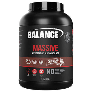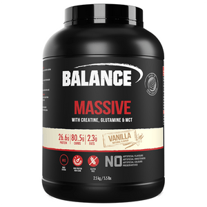 Balance Massive is the ultimate high carb, high protein source to meet the demands of training and is ideal for 'hard gainers’. This formula also combines added Glutamine, Creatine, Medium Chain Triglycerides and contains naturally occurring BCAAs. This high-calorie formula delivers high energy# to support fast recovery.