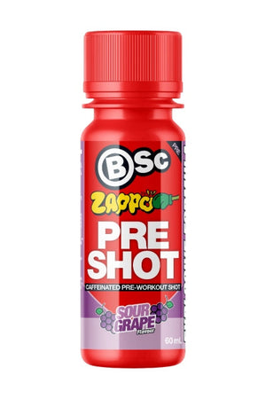 Ignite your workout with the BSc Pre-Workout Shot, featuring Zappo-inspired Sour Blue Raspberry, Sour Grape and Sour Cola candy flavours! These innovative 60ml shots are designed to deliver an explosive boost of energy and focus, perfect for your pre-workout routine.