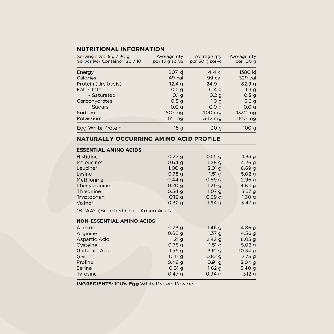 The unflavoured powder delivers a Biological Value near 100, ensuring efficient protein absorption every serve. Rich in ovalbumin, ovotransferrin, and lysozyme, it supports not only muscles but also your immune system and overall health.